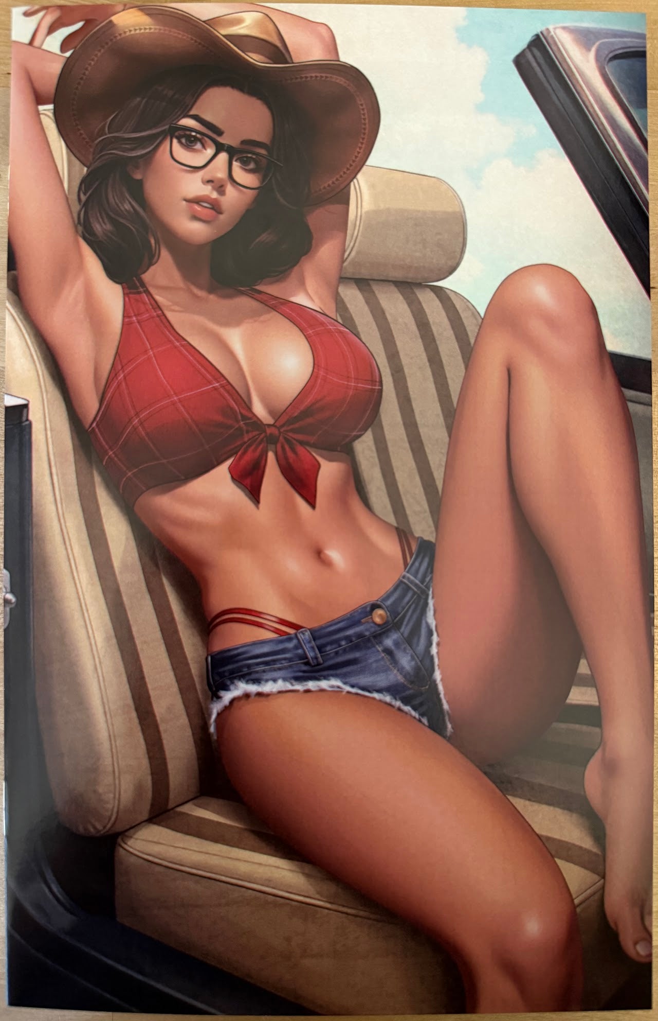 She’s got her boots on the dash, a smirk on her lips, and trouble written all over her curves. This sultry cowgirl doesn’t need a saddle—just leather seats, long legs, and a late-night agenda. Hot Date is a steamy ride into temptation, where southern charm meets backseat heat.